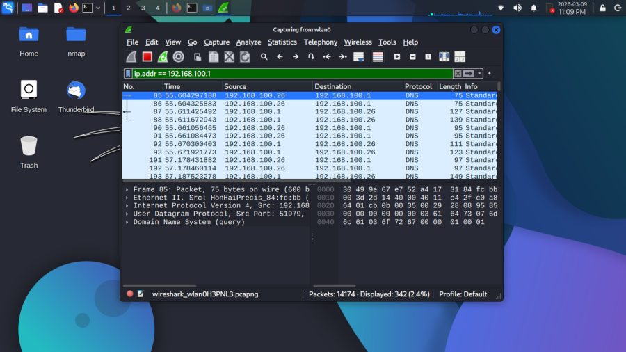 Filters ▸ arp · dns · http · tcp.port == 80 · ip.addr == 192.168.100.1